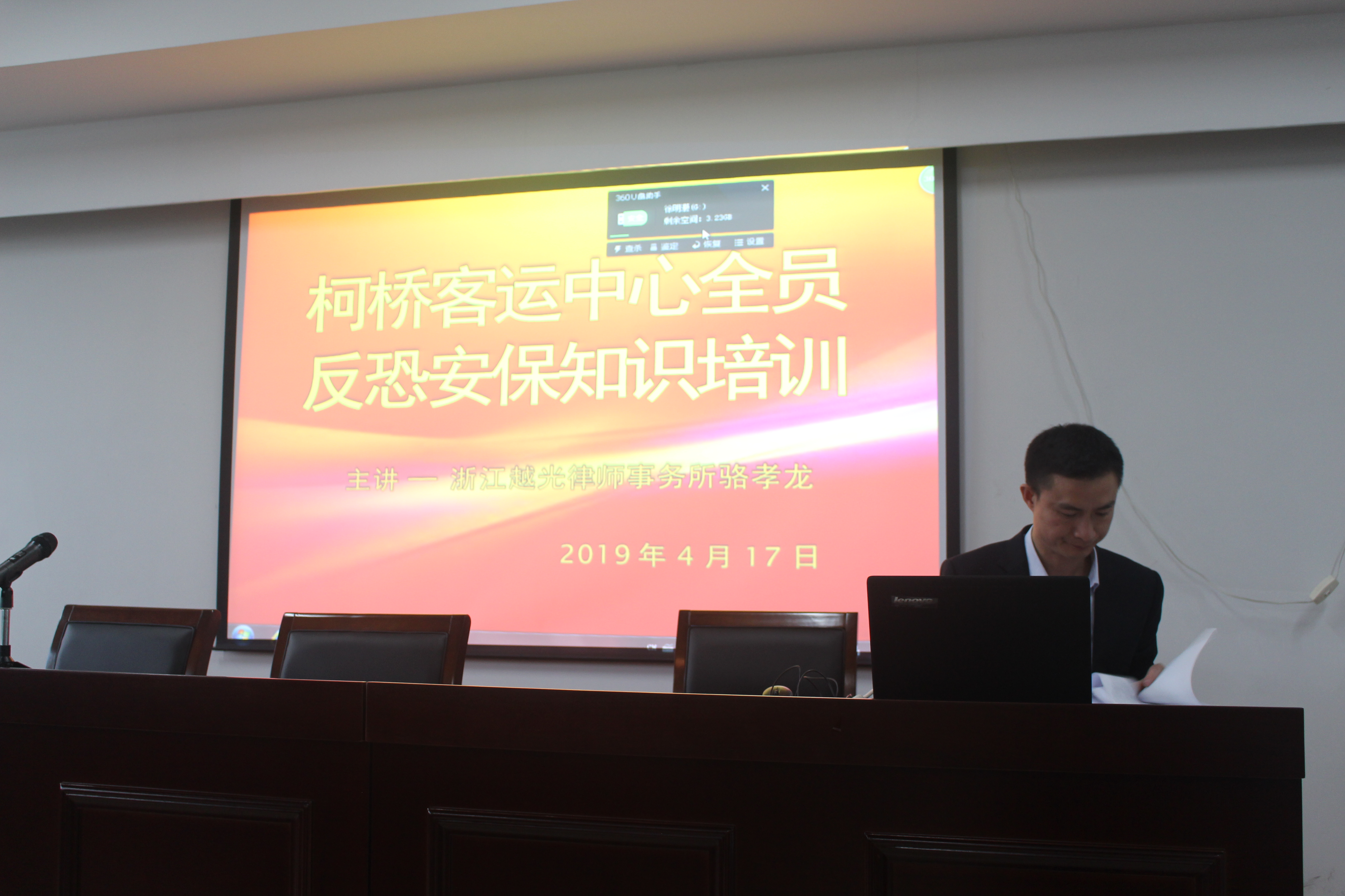 此次安全培訓特邀浙江越光律師事務所駱孝龍律師主講。會上駱孝龍律師從反恐知識、消防知識、事故案例等方面,采取理論和實際相結合的方式進行了詳細的講解和分析。從不同層面闡述了安全就是效益、安全就是幸福這一理念。
