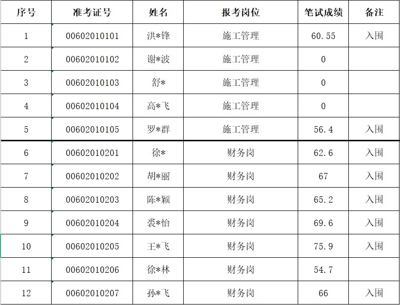 紹興市柯橋區建設集團有限公司及其下屬單位筆試成績